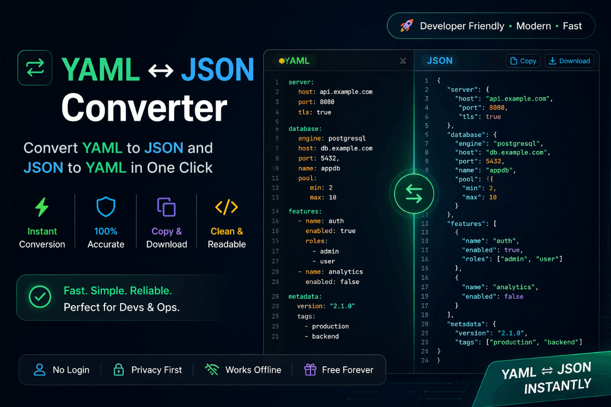 YAML to JSON Converter — JSON to YAML Online Free | Instant ...
