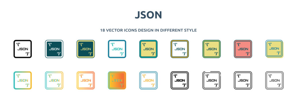 Set Of Json File Format Icons With A Recognizable Design With Modern ...