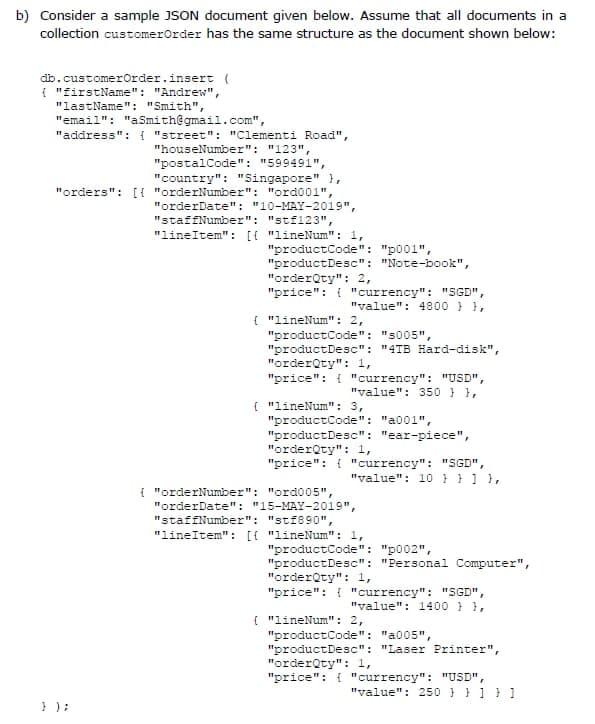 Solved Consider a sample JSON document given below. Assume | Chegg.com