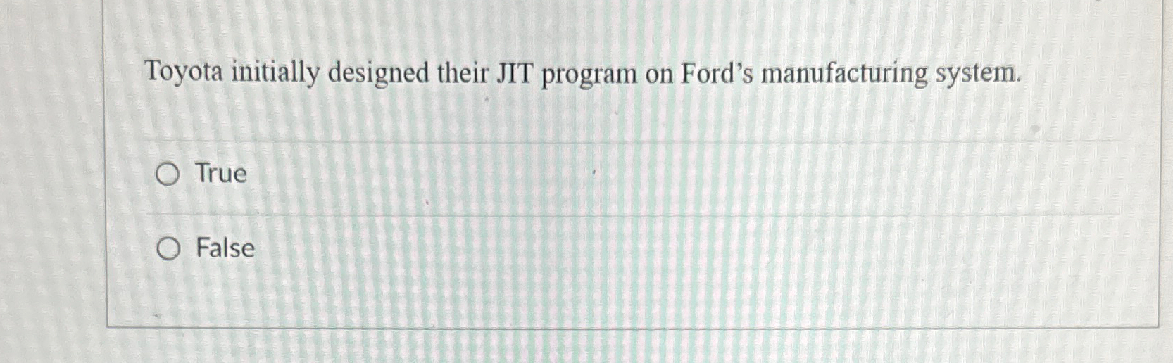 Solved Toyota initially designed their JT program on Ford's | Chegg.com