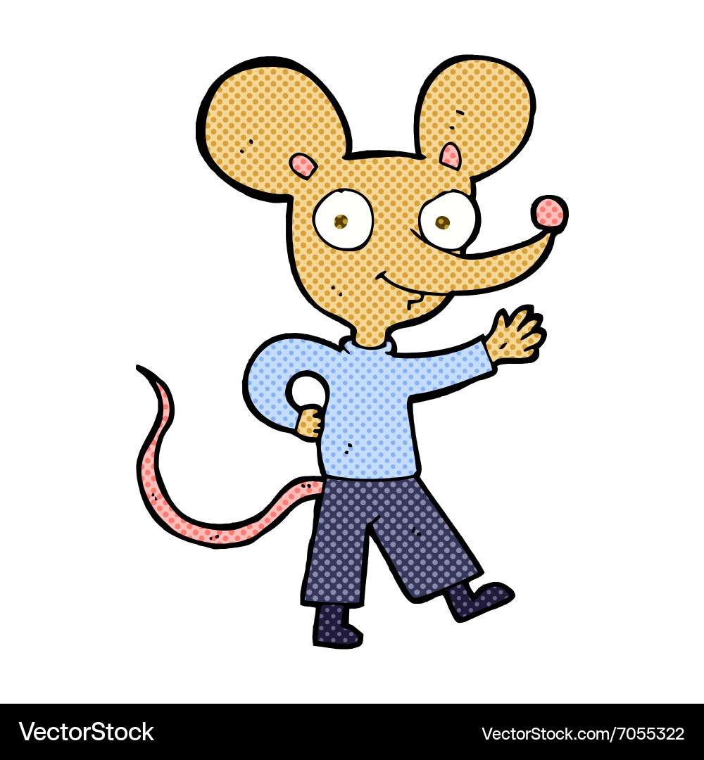 Comic cartoon waving mouse Royalty Free Vector Image