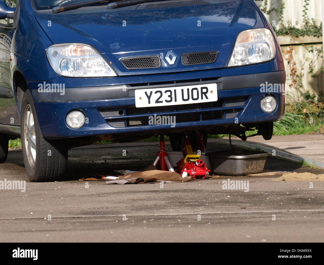 Car jacked up, UK Stock Photo - Alamy