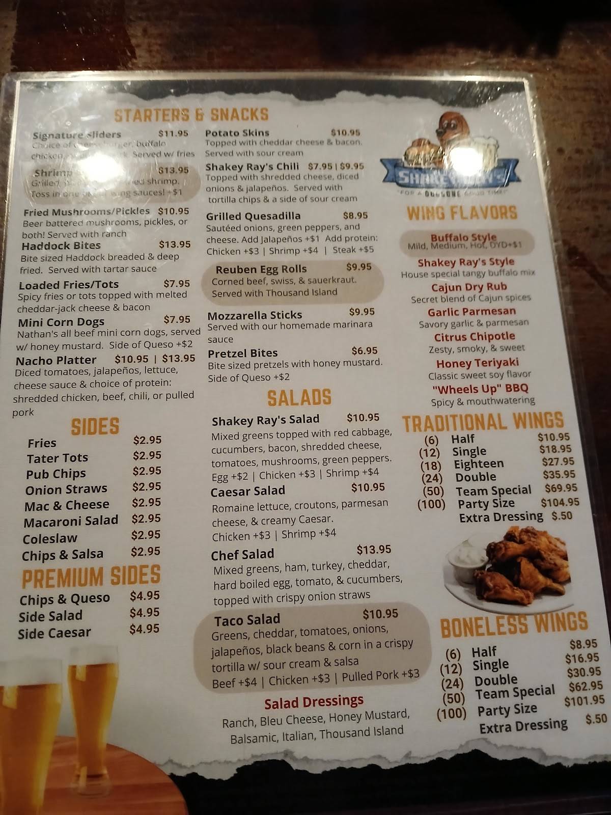 Menu at Shakey Ray's Tavern pub & bar, Apex