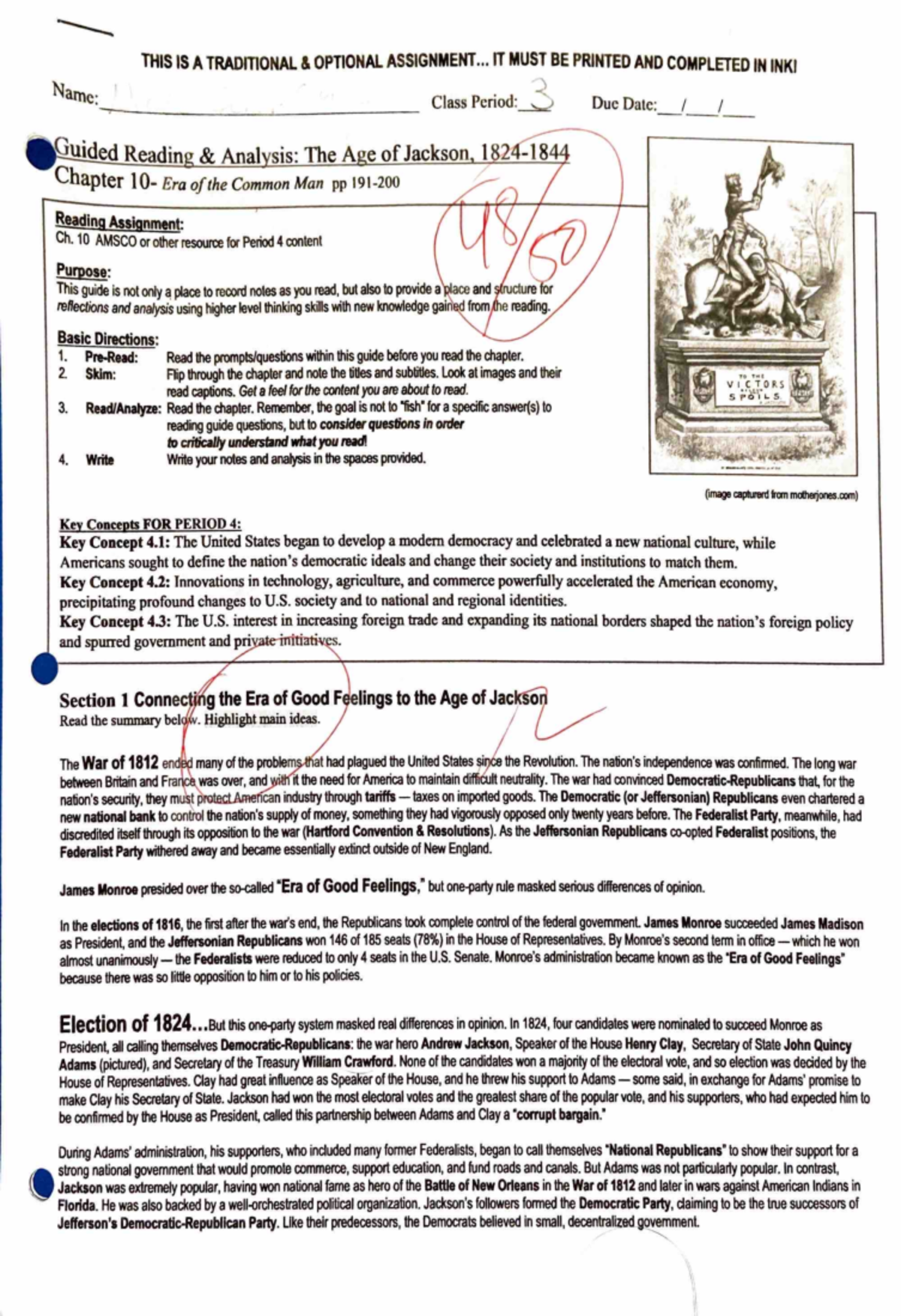 The age of jackson - Class notes assignment. - THIS IS A TRADmONAL ...
