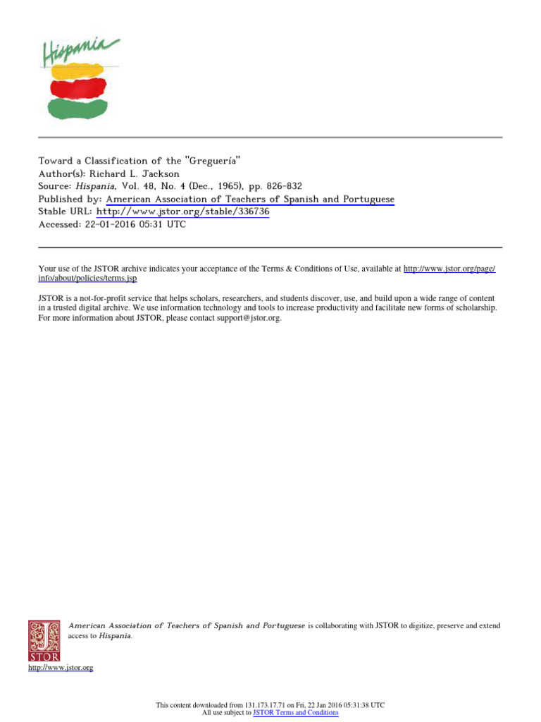 Richard L. Jackson - Toward A Classification of The - Greguería | PDF ...