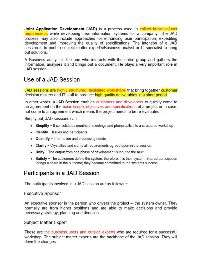 Use of A JAD Session: Joint Application Development (JAD) Is A Process ...