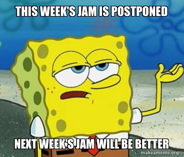 This week's jam is postponed Next week's jam will be better - Tough ...