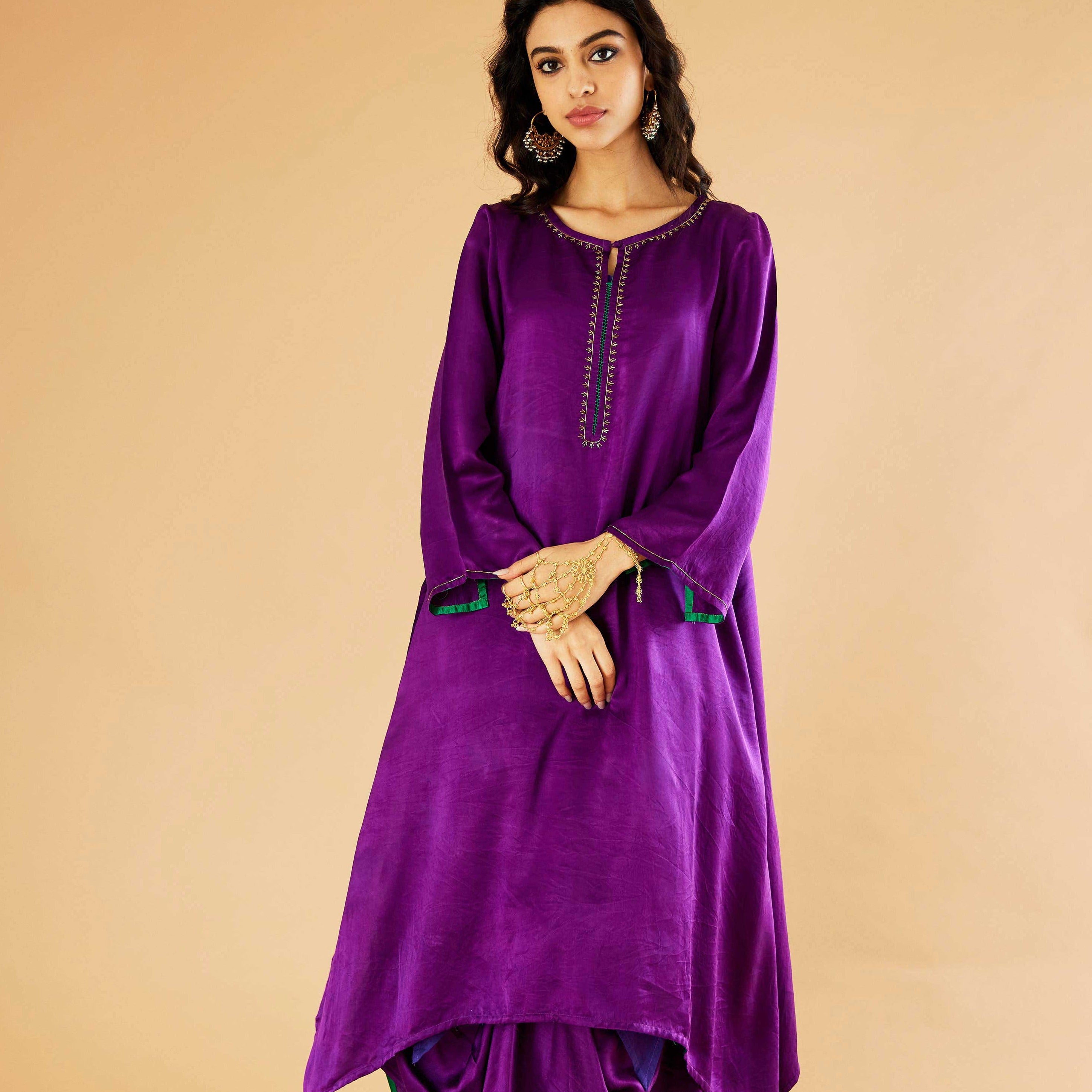 Purple Jamuni Sitara Raisah Kurta With Pants - 3XL | Neckline designs ...
