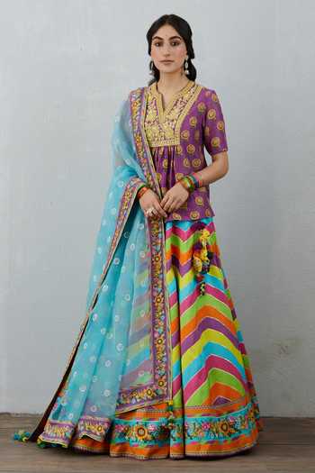 Buy Torani Multi Color Jamuni Antara Chanderi Kurta Lehenga Set For ...