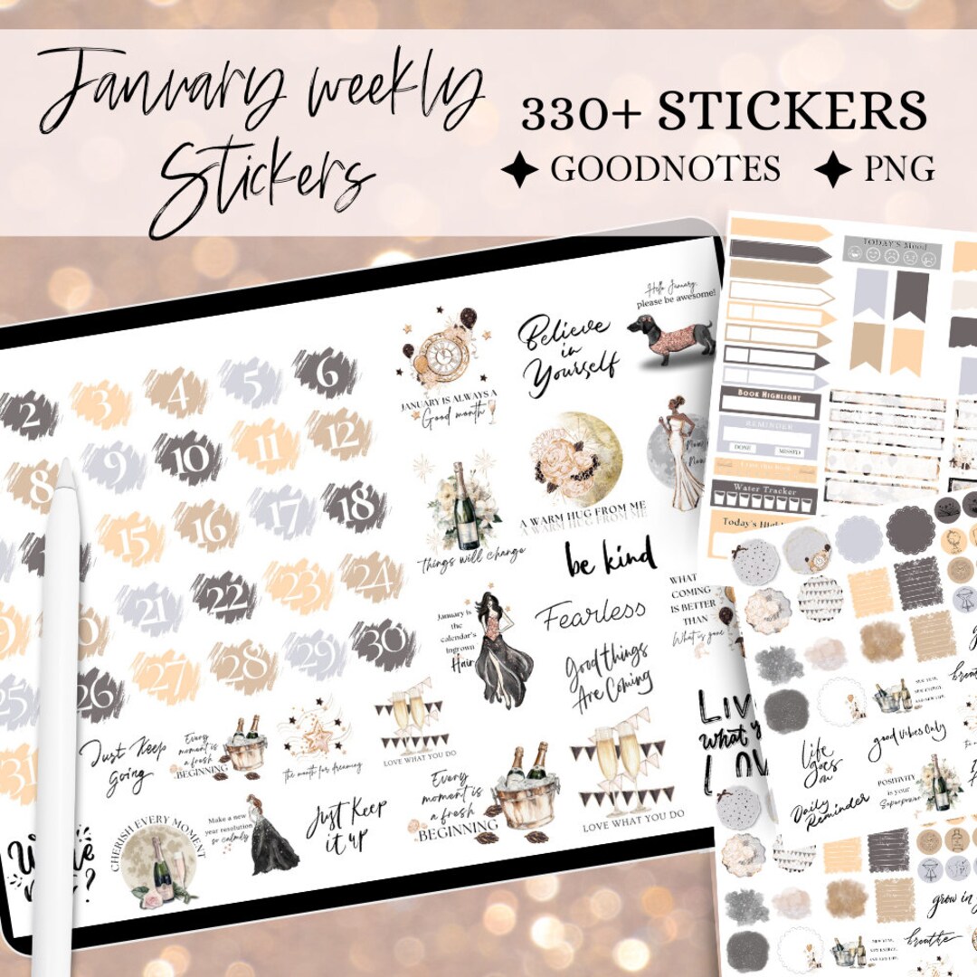 January GOODNOTES STICKER, New Year Digital Sticker, Digital Journaling ...