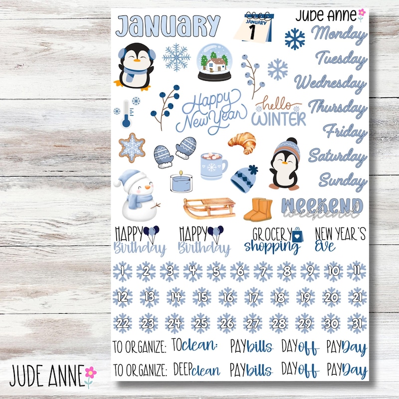 7x9 January Monthly Sticker Kit - Etsy