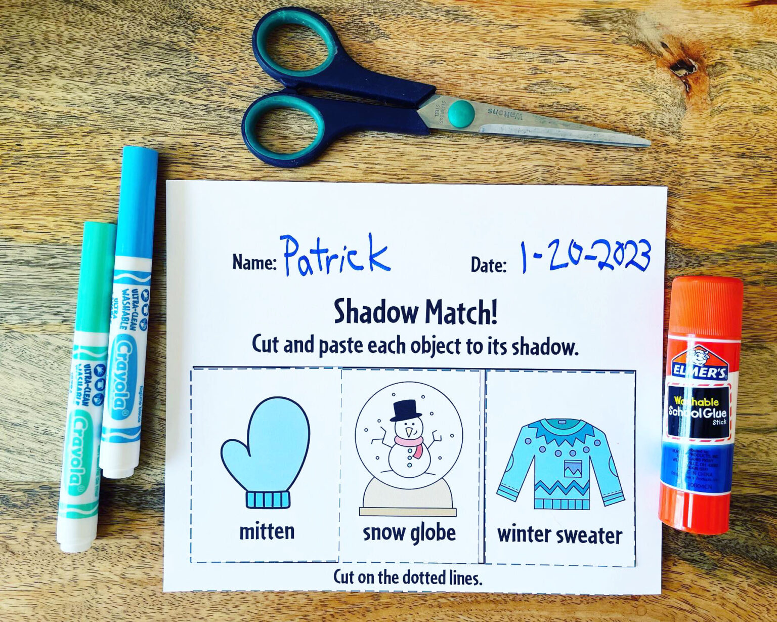 January Cut/Match and Paste Worksheet for Pre-K and Toddlers by Hand Candy