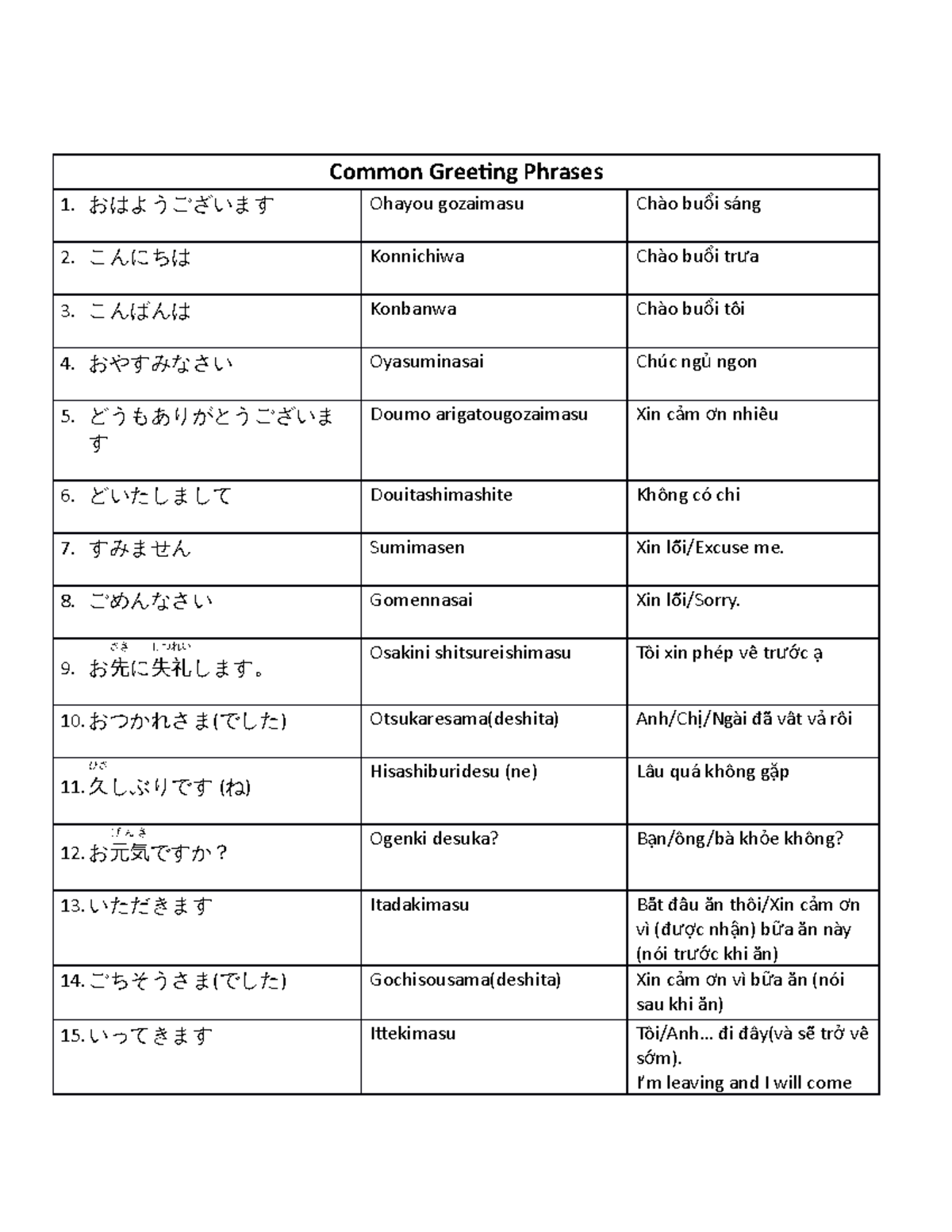 Common greeting phrases - Common Greeting Phrases おはようございます Ohayou ...