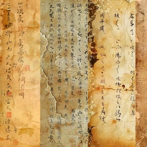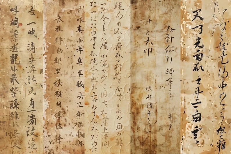 Japanese Kanji Writings Digital Paper Collection | Japanese Parchment ...