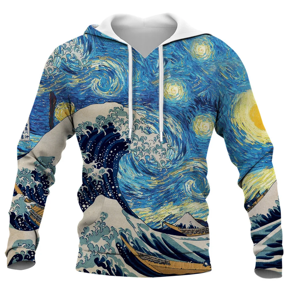 Japanese Retro Traditional Vortex Wave Art Print Long Sleeve Hoodie