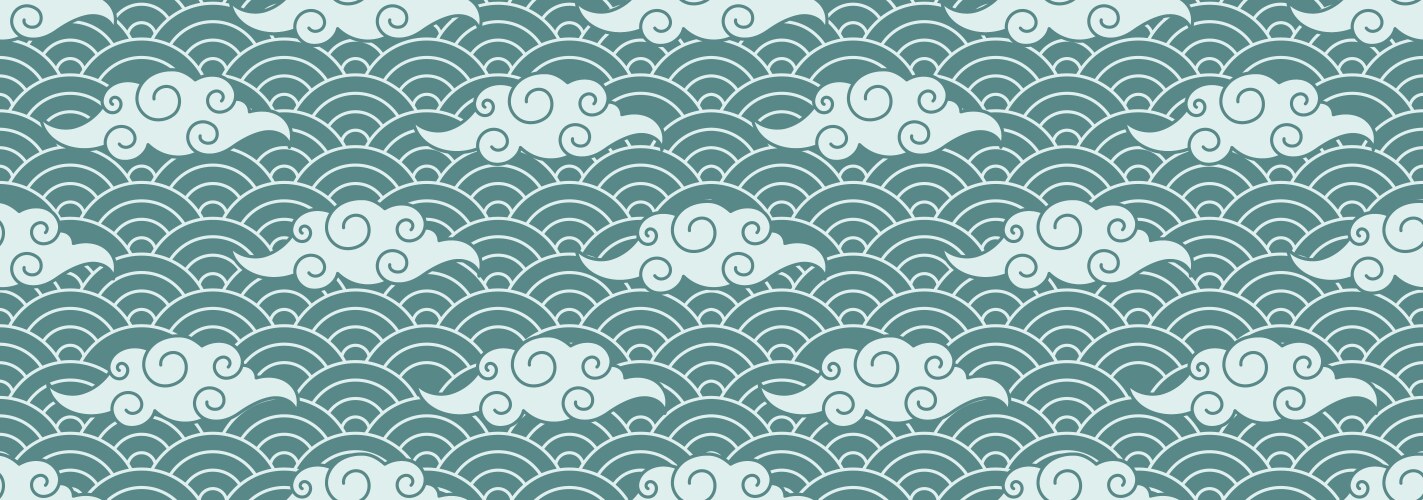 Japanese Wave Pattern - Clouds & Scrolls Vector Image