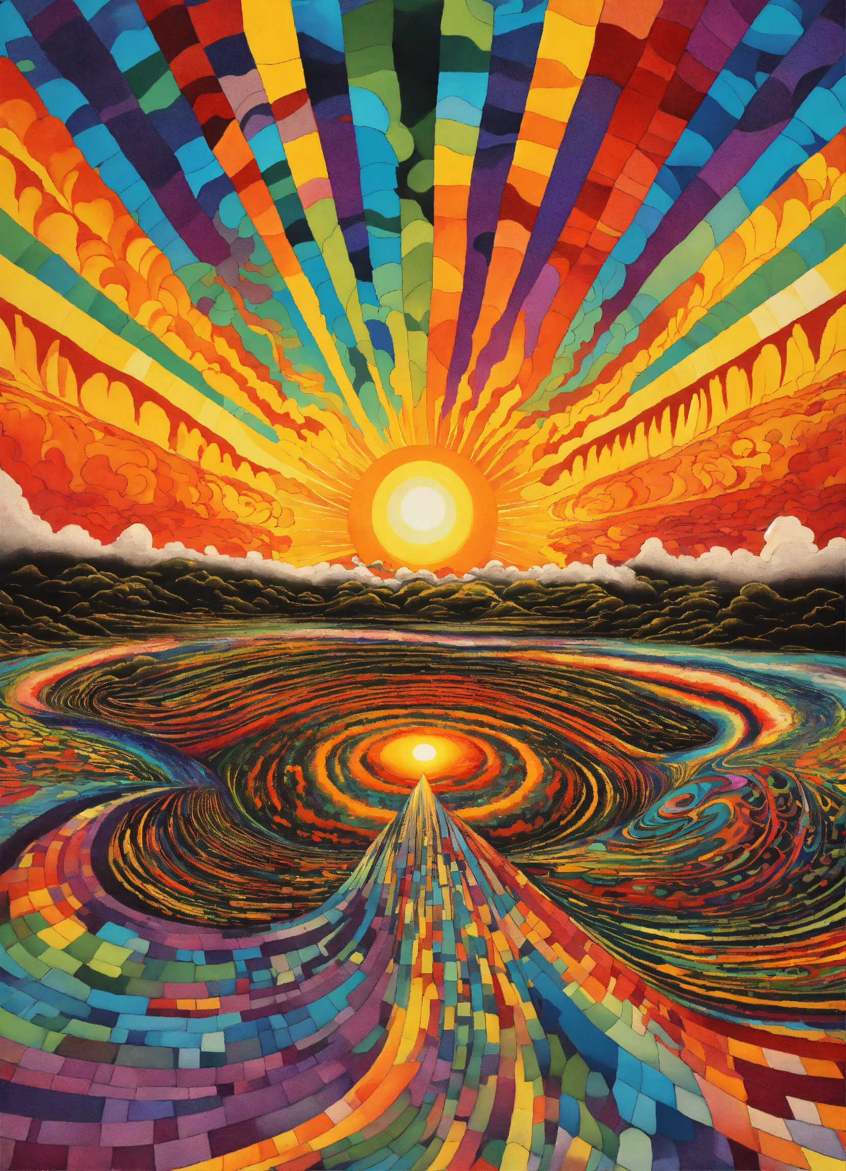 Vibrant Swirling Vortex - Japanese Ukiyo-e Inspired Illustration ...