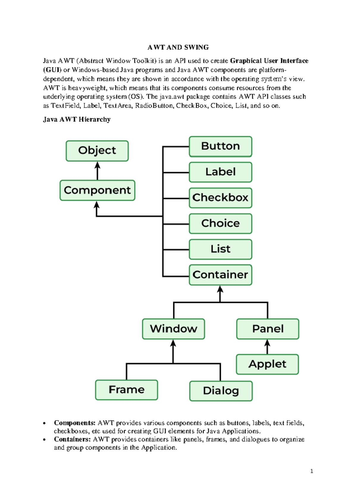 AWT Hierarchy, Container & Components Window, Frame, Panel - AWT AND ...