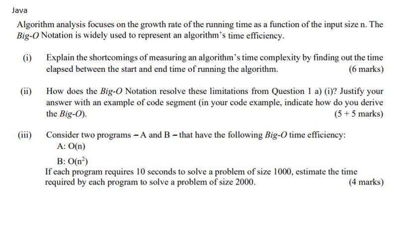 Solved Java Algorithm analysis focuses on the growth rate of | Chegg.com