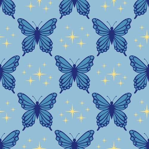 Seamless pattern with blue butterfly and tiny star β Royalty-Free ...