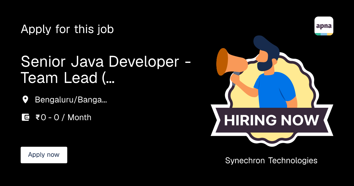 Senior Java Developer - Team Lead (Microservices & Cloud) in Synechron ...