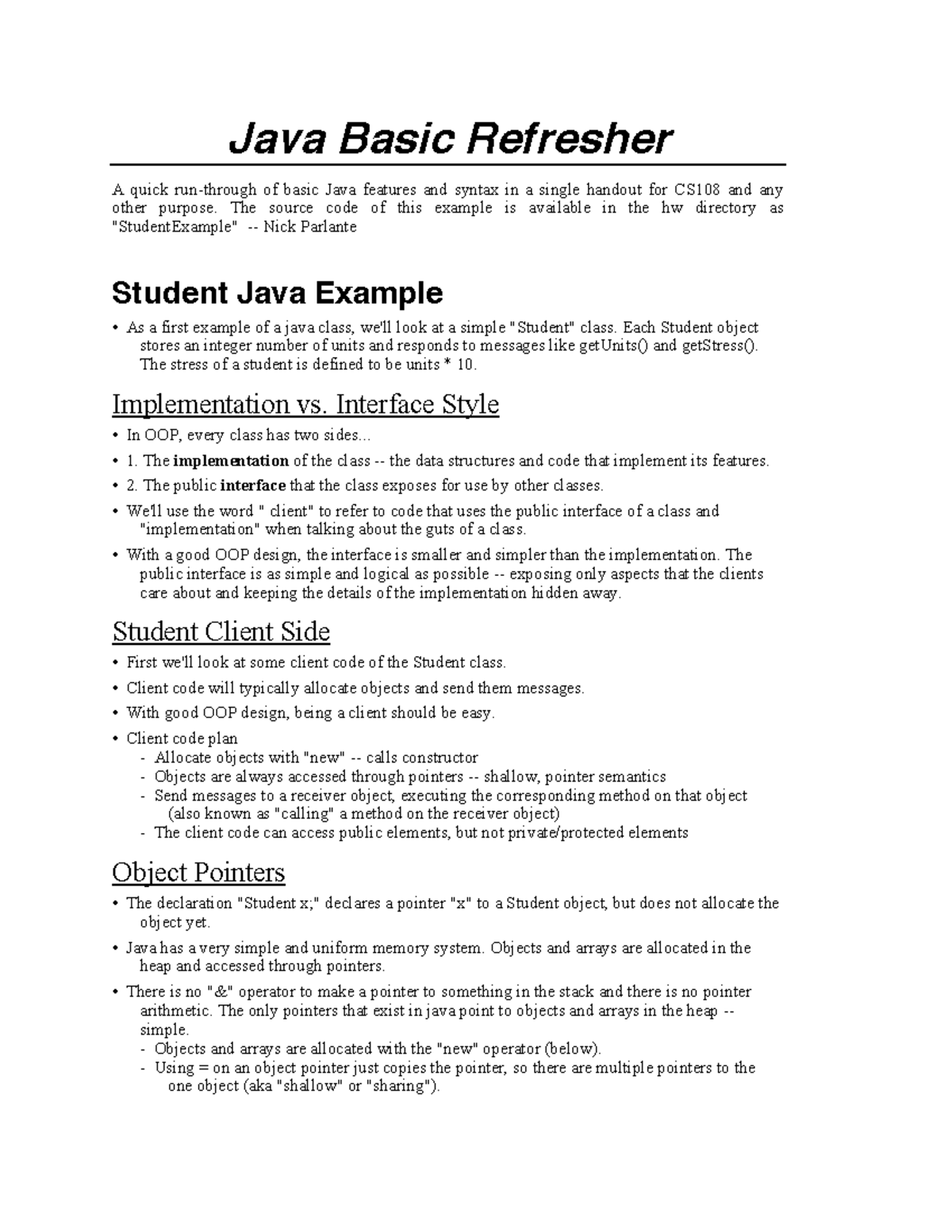 Java Basics Refresher for CS108: Key Features & Syntax Overview - Studocu