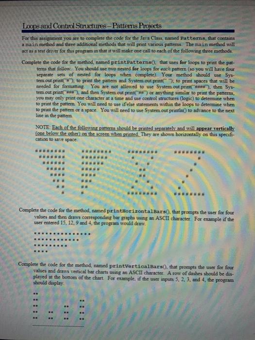 Solved Loops and Control Structures - Patterns Projects For | Chegg.com