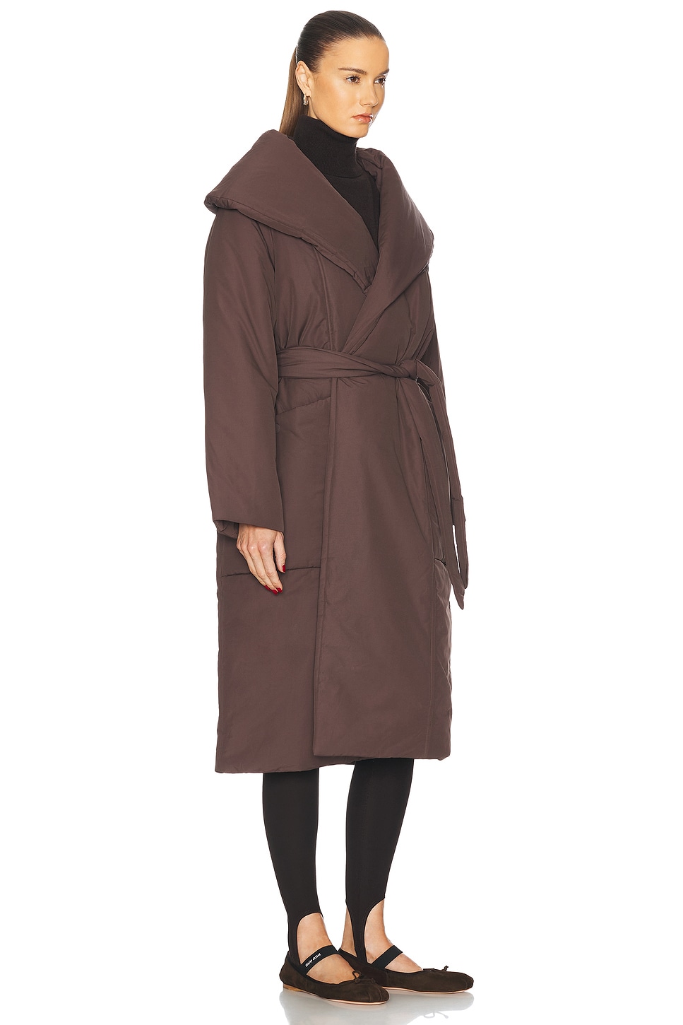 Varley Ana Long Wrap Puffer Coat in Coffee Bean | FWRD