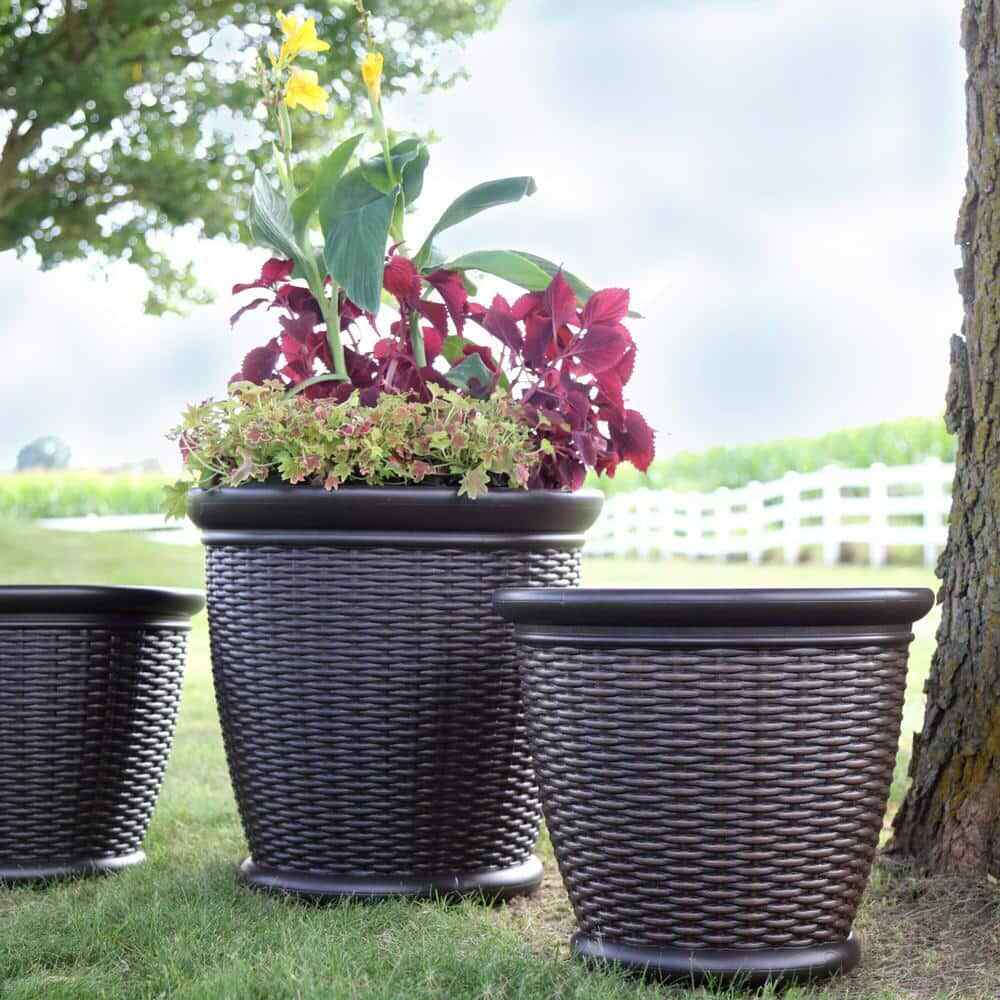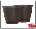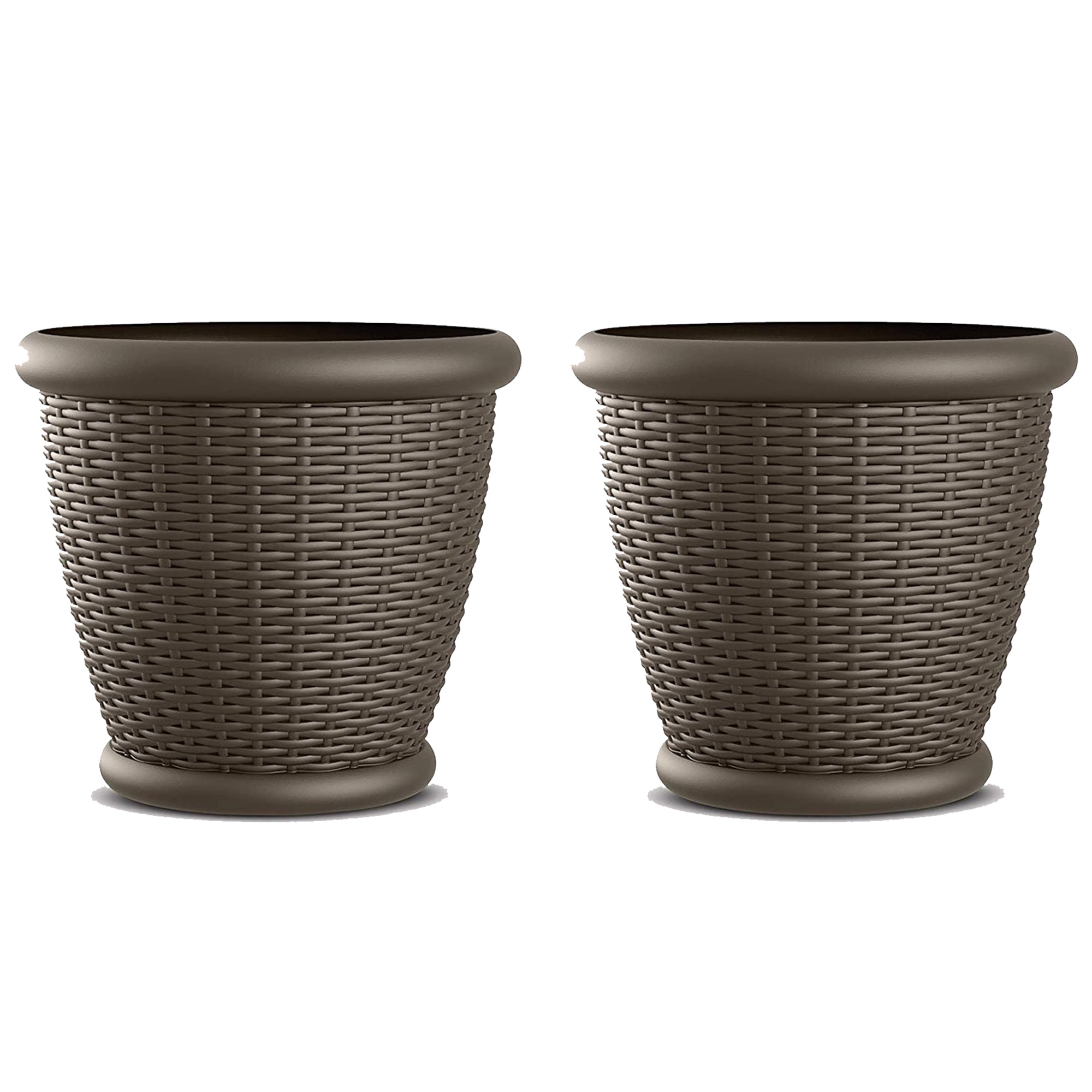 Suncast Willow 18" Diameter Decorative Wicker Planter Pot, Java (2 Pack ...