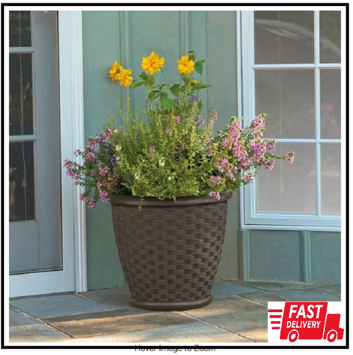 Suncast Sonora Resin Wicker Planter Lightweight Flower Pot, Java, 18 ...