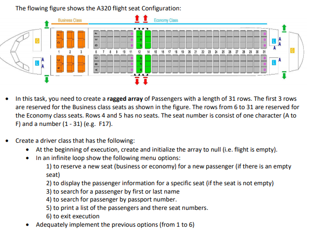 Solved In Java, implement an airplane seat reservation | Chegg.com