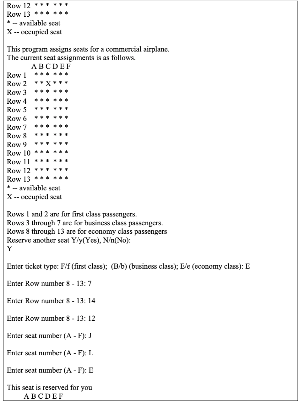 Solved JAVA Write a program that can be used to assign seats | Chegg.com