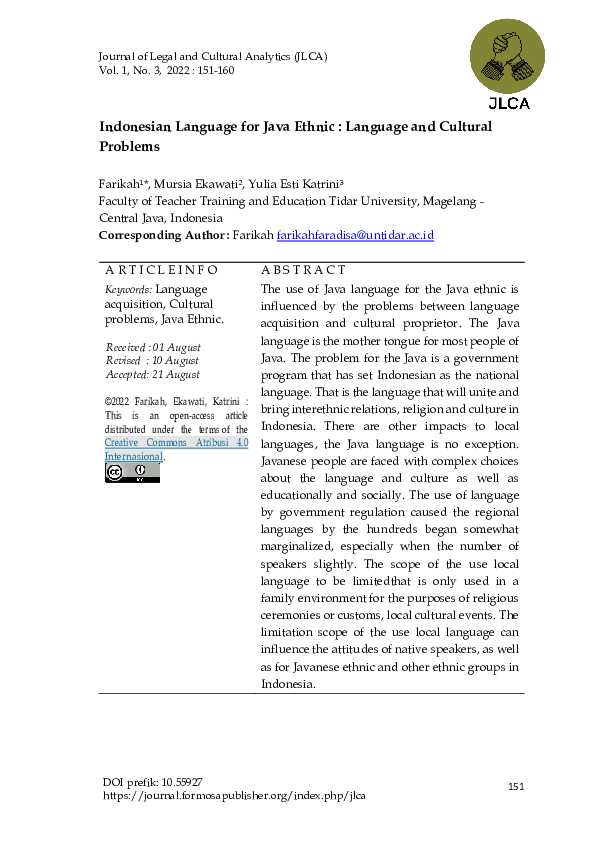 (PDF) Indonesian Language for Java Ethnic: Language and Cultural Problems