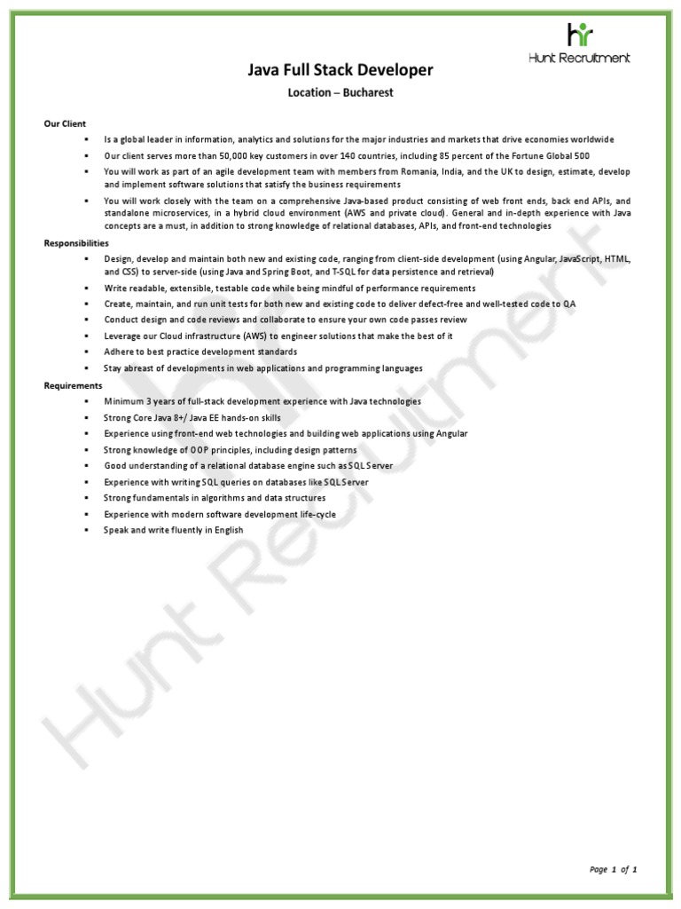 JD Java Full Stack Developer | PDF | Internet & Web | World Wide Web
