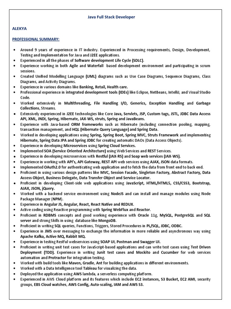 Resume Java Full Stack Developer - Profile, Skills, Summary & Tips