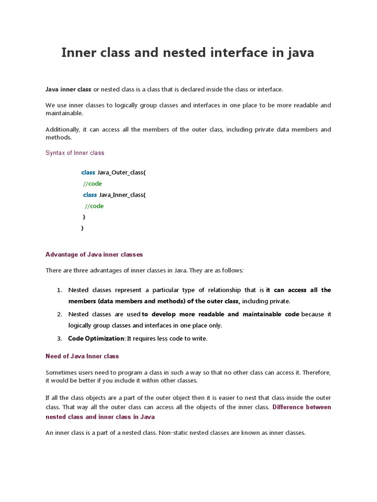 Java Inner Classes Guide: Learn About Nested Classes in Java | PDF ...