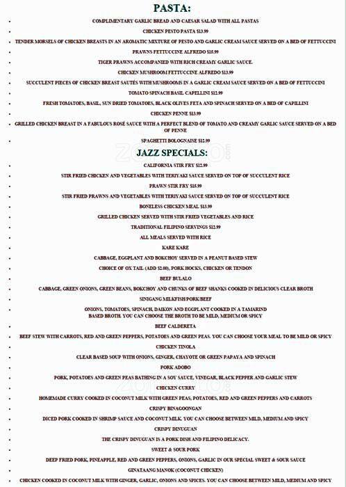 Menu at Java Jazz Cafe & Bistro, New Westminster