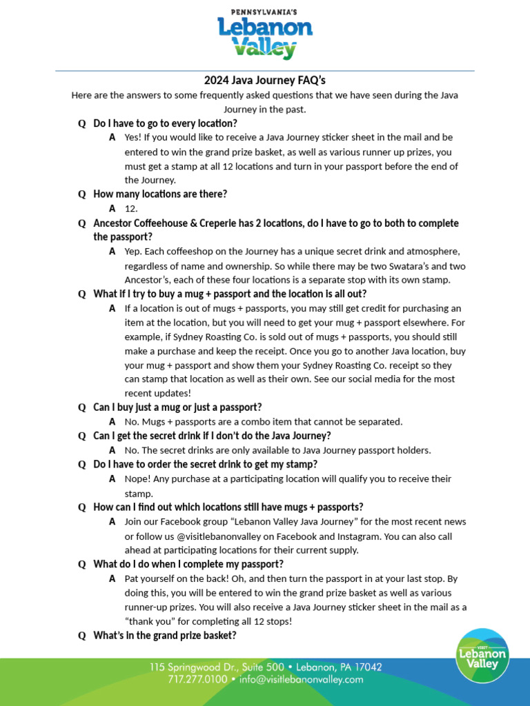 Lebanon County's annual 'Java Journey' coffee trail returns in 2024