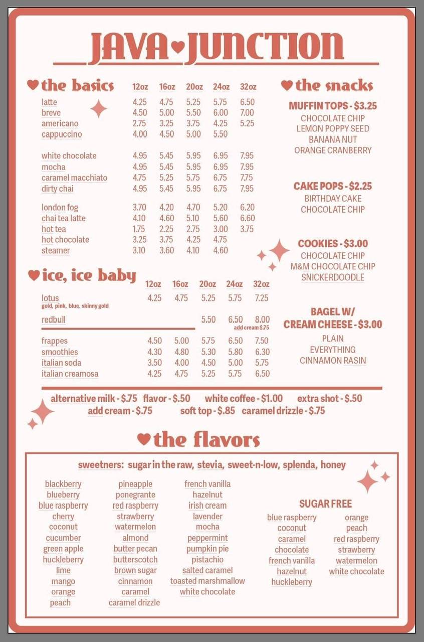 Java Junction in King - Restaurant menu
