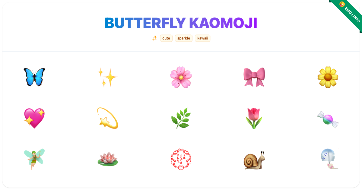 Butterfly Kaomoji Emojis 🦋 🌸 | Meaning, Copy & Paste