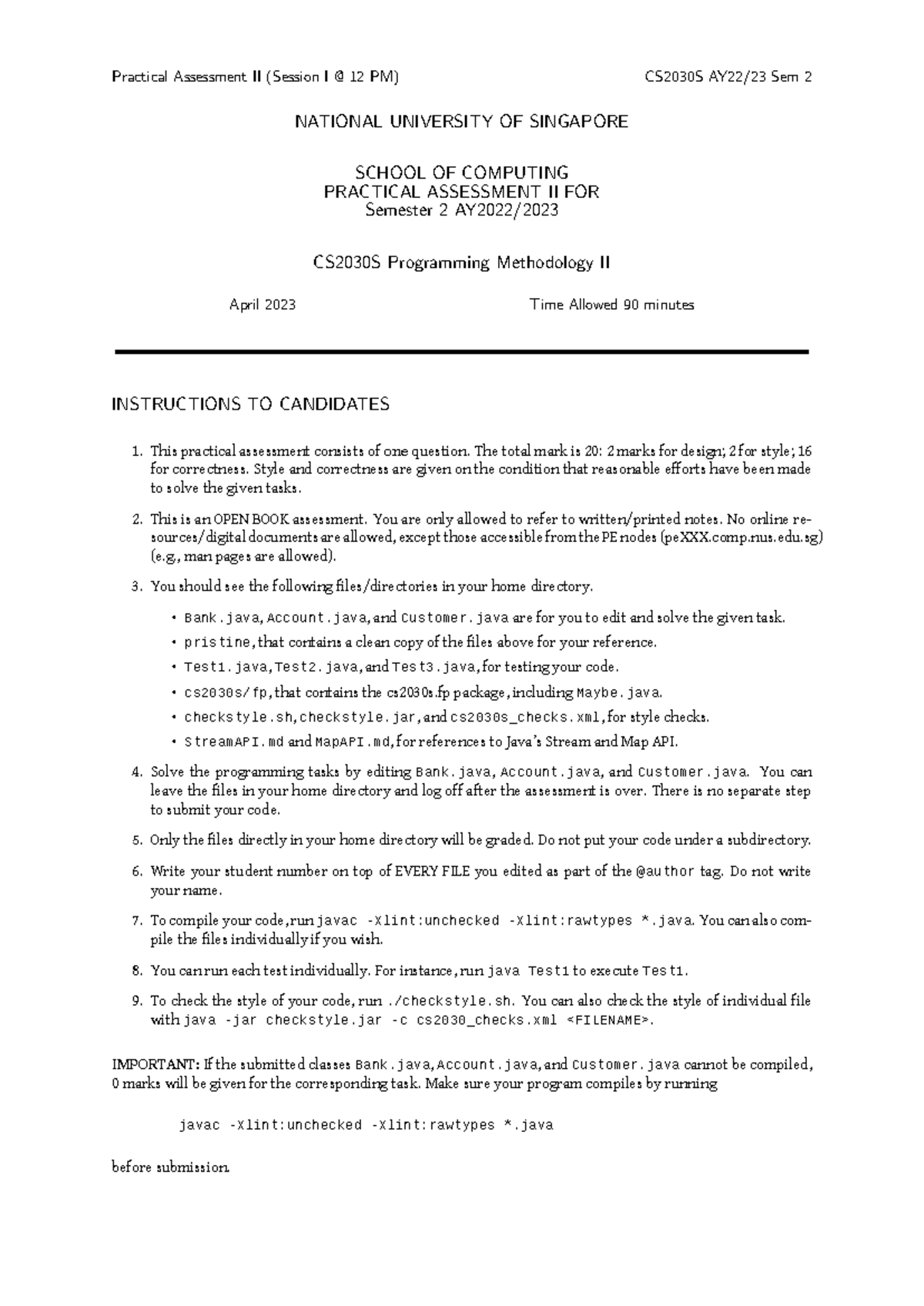 Practical Assessment II (Session I & IV) CS2030S Sem 2 - April 2023 ...