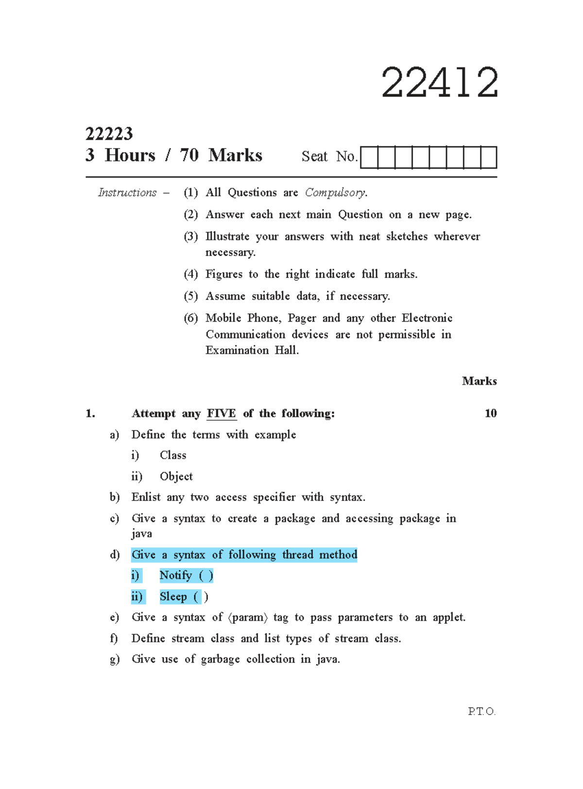 22412 Summer 2023 Java Exam Question Paper (3 Hours, 70 Marks) - Studocu