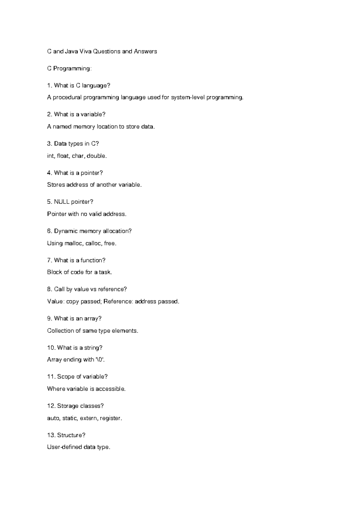 C and Java Viva Q&A: Key Questions for Exam Prep - Studocu