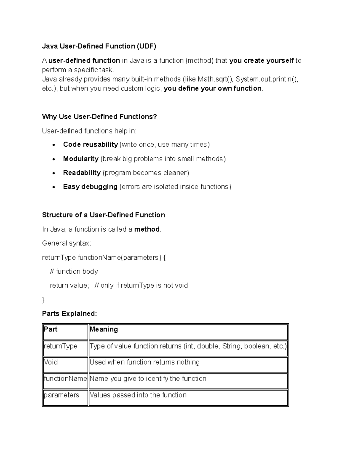 Part 5: Java UDF - Understanding User-Defined Functions - Studocu
