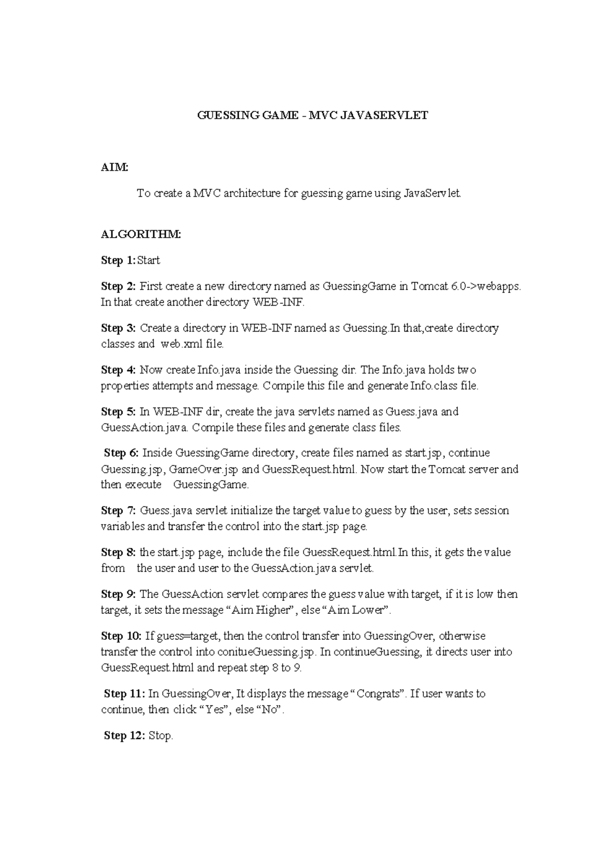 GUESSING GAME MVC JAVA SERVLET PROJECT GUIDE - Studocu