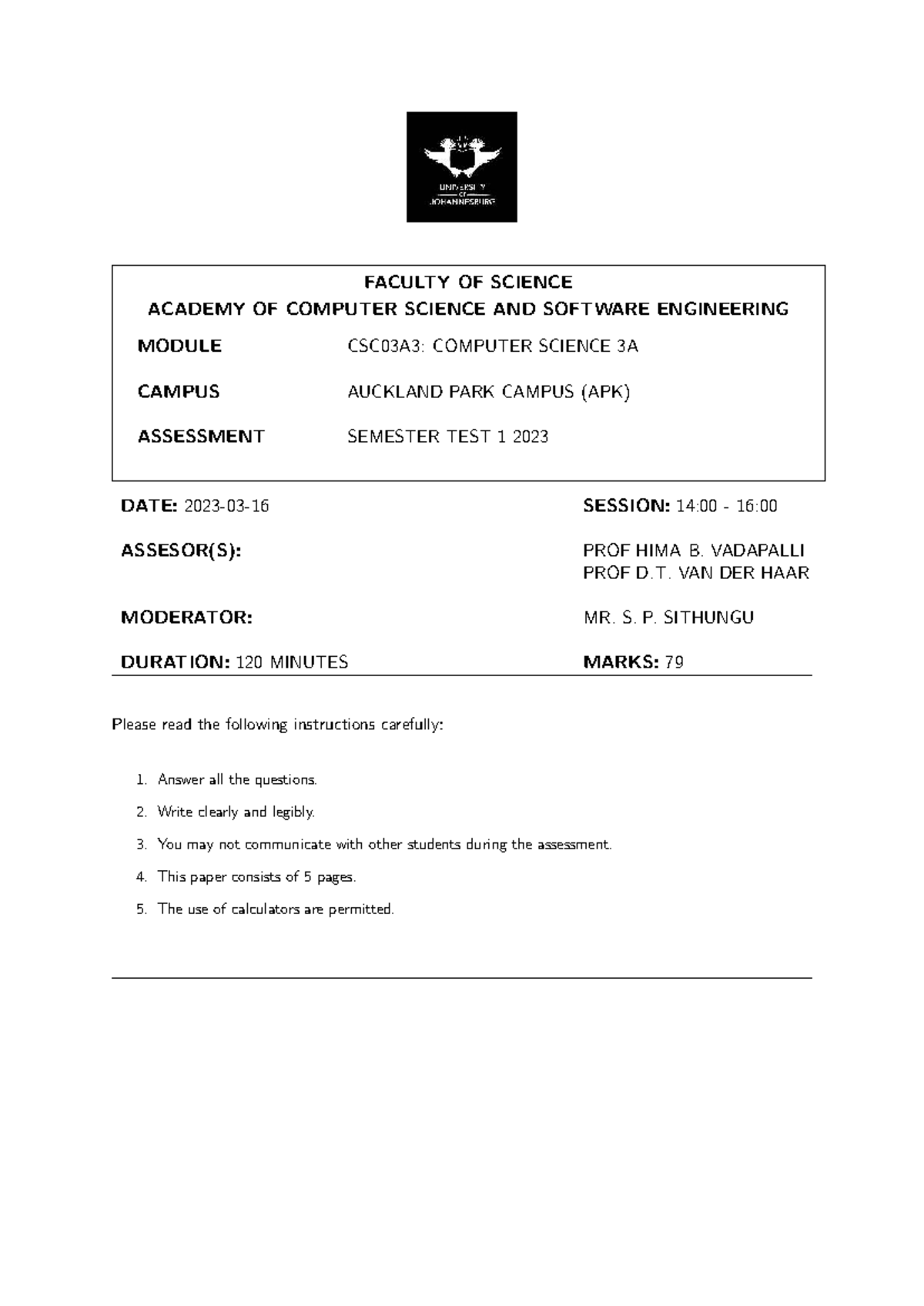 Semester Test CSC03A3: Computer Science 3A 2023 - Studocu