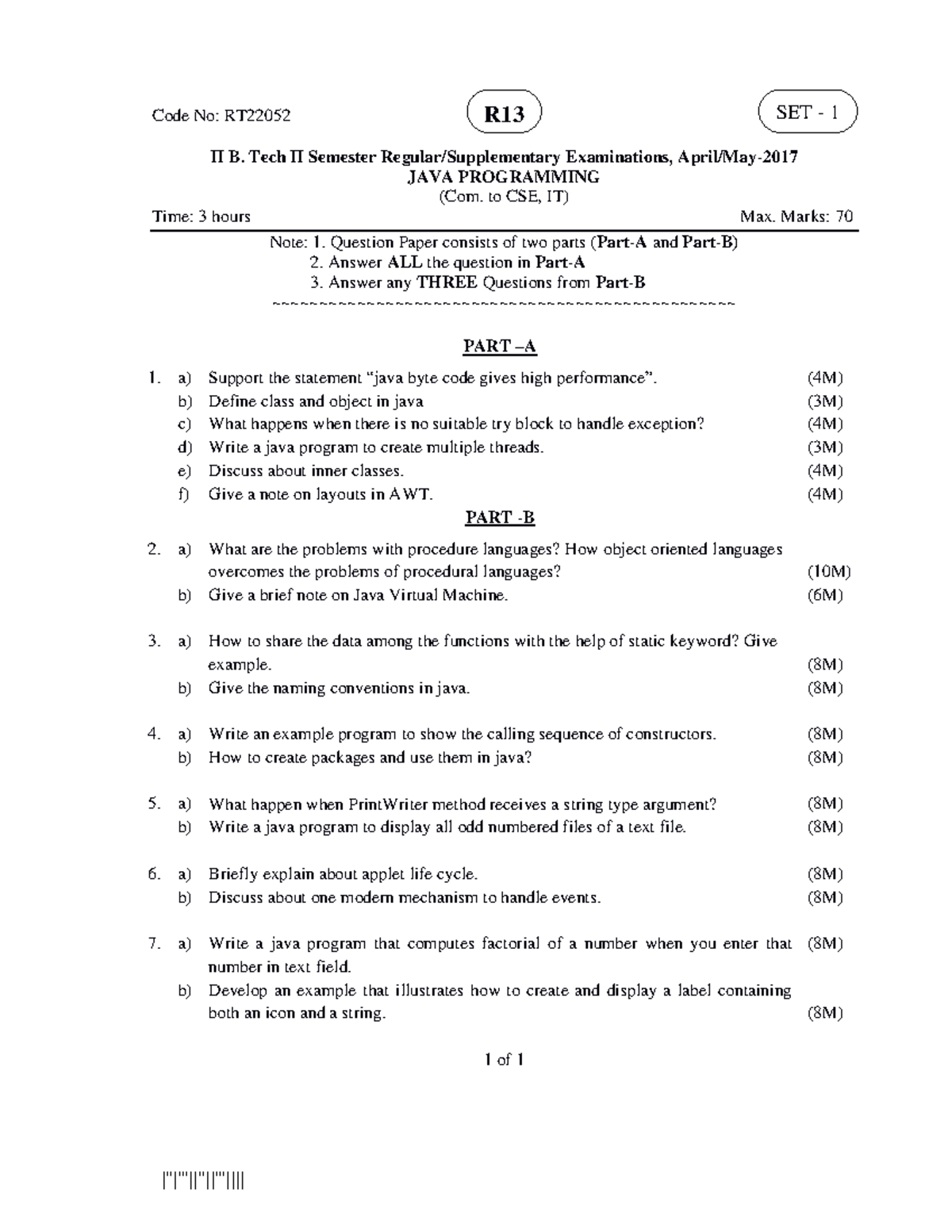 Java Programming II B. Tech II Sem Exam Questions (RT22052 R13) - Studocu