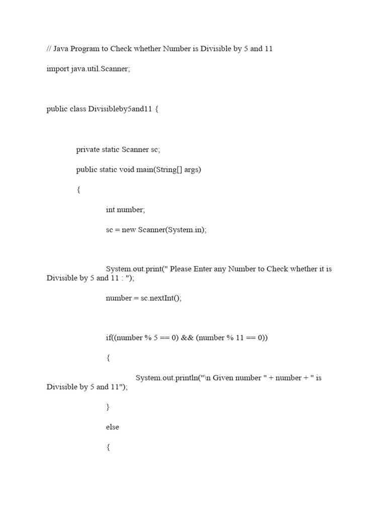 Java Program to Check Whether Number is Divisible by 5 and 11 | PDF