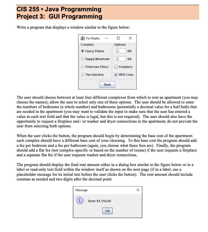 Solved CIS 255. Java Programming Project 3: GUI Programming | Chegg.com