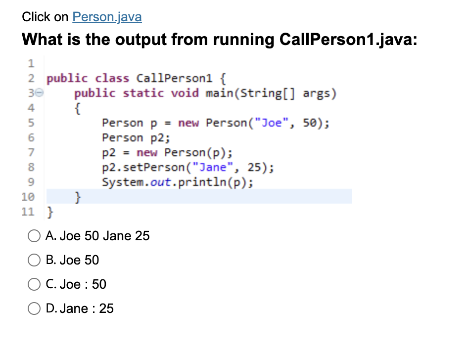 Solved The output from running CallPerson3.java is: A. | Chegg.com